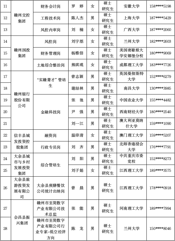 贛州市國(guó)有企業(yè)赴蘭州引才簽約28人,現(xiàn)予公示