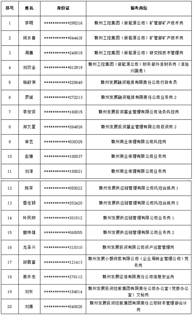 贛州發(fā)展投資控股集團(tuán)有限責(zé)任公司2025年公開招聘擬錄用人員名單及有關(guān)事項(xiàng)公告