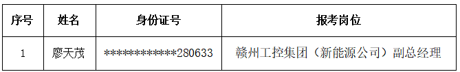 根據(jù)《贛州發(fā)展投資控股集團有限責任公司2025年公開招聘公告》,經(jīng)報名、資格審查、第一輪面試、第二輪面試、體檢、考察等程序,現(xiàn)將贛州工控集團(新能源公司)副總經(jīng)理擬錄用人員名單及有關事項公告如下: