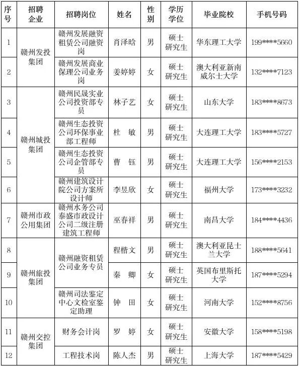 根據(jù)贛州市“十萬(wàn)英才聚贛南”組團(tuán)引才活動(dòng)通知及贛州市國(guó)有企業(yè)組團(tuán)引才公告相關(guān)要求,經(jīng)報(bào)名、資格審查、面試、背景調(diào)查及體檢等程序,現(xiàn)將贛州市國(guó)有企業(yè)2025年組團(tuán)引才擬錄用人員名單公示如下: