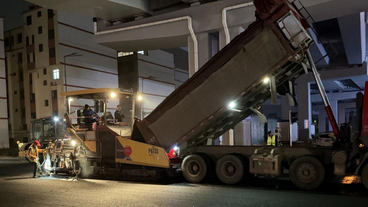 沙河大道快速路完成最后一段主線瀝青攤鋪