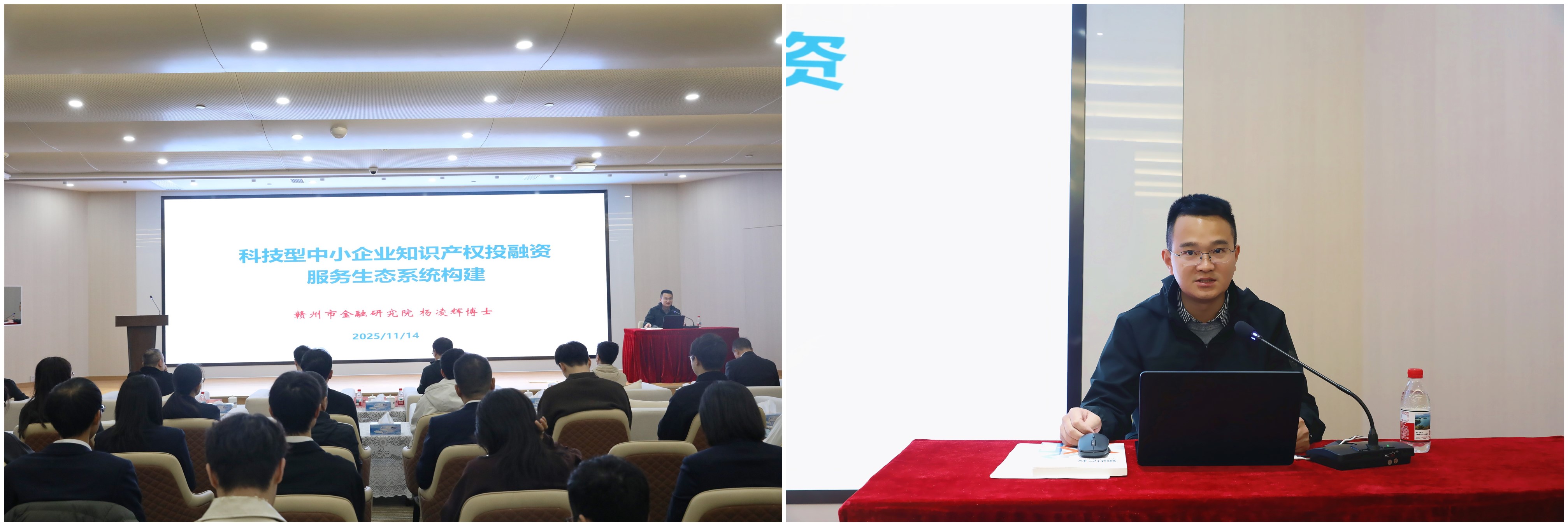 本次大講堂邀請(qǐng)了贛州市金融研究院副院長(zhǎng)、江西理工大學(xué)經(jīng)濟(jì)管理學(xué)院博士楊凌輝進(jìn)行專題授課。他以“科技型中小企業(yè)知識(shí)產(chǎn)權(quán)投融資服務(wù)生態(tài)系統(tǒng)構(gòu)建”為題,系統(tǒng)剖析了我國知識(shí)產(chǎn)權(quán)投融資現(xiàn)狀及贛州市實(shí)踐痛點(diǎn),結(jié)合省內(nèi)外典型案例,提煉出具有借鑒意義的實(shí)施經(jīng)驗(yàn),并提出從前端準(zhǔn)入、融資模式設(shè)計(jì)到貸后管理與資產(chǎn)處置的全流程實(shí)施路徑。同時(shí),他錨定“十五五”時(shí)期的發(fā)展目標(biāo),提出了“基礎(chǔ)—躍升—引領(lǐng)”三階推進(jìn)思路,為破解科技型中小企業(yè)融資難題、構(gòu)建良性服務(wù)生態(tài)提供了兼具現(xiàn)實(shí)針對(duì)性與戰(zhàn)略前瞻性的有益參考。
